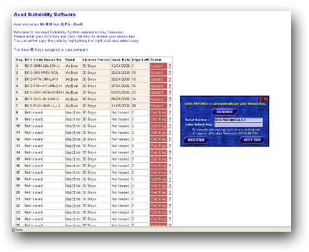 Part 1 required a key generator to lock down each individual licence to each machine. It needed to work both automatically over the web and via a telephone operator system. It also had to have the ability to issue variable length time based keys. The generator was written in VB with a VBScript version for the web.