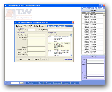 PORS was developed to replace an ageing system in a very busy company. It allows orders to be taken by telephone and added live on to the system realtime.