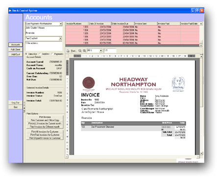 Record Keeper was commissioned by Headway Northampton to keep track of the increasing volume of client related invoices and payments.